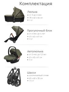 • Габариты коляски с люлькой (ВхШхГ), см: 115 х 60 х 88