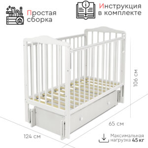 Размер кровати (ДхШхВ), см: 124х65х106 (высота с учетом колес)