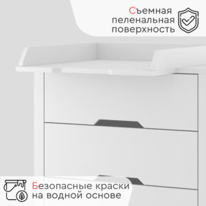 Детский комод TOMIX FOSSER — идеальное решение для хранения вещей вашего малыша. Его размеры составляют 80 см в длину, а материал изготовления — МДФ и ЛДСП. Комод оснащён тремя выдвижными ящиками и съёмным пеленальным столиком, который можно использовать для ухода за ребёнком. Благодаря шариковым направляющим, ящики открываются плавно и бесшумно, обеспечивая комфорт при использовании. Белый цвет комода добавит свежести и уюта в детскую комнату.