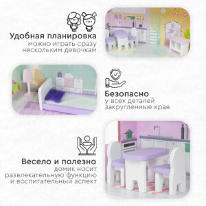 У всех элементов дома закругленные края, что делает игру безопасной для маленьких детей.