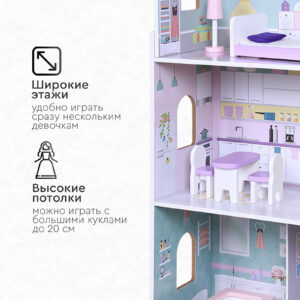 Трёхэтажный деревянный дом для кукол Tomix Anna – это мечта любой девочки! На первом этаже расположена гостиная и ванная комната, на втором этаже - кухня, третий этаж – уютная спальня. Мебель и предметы интерьера, которые идут в комплекте, сделают игру максимально реалистичной. Нежные цвета интерьера придутся по душе маленьким принцессам!